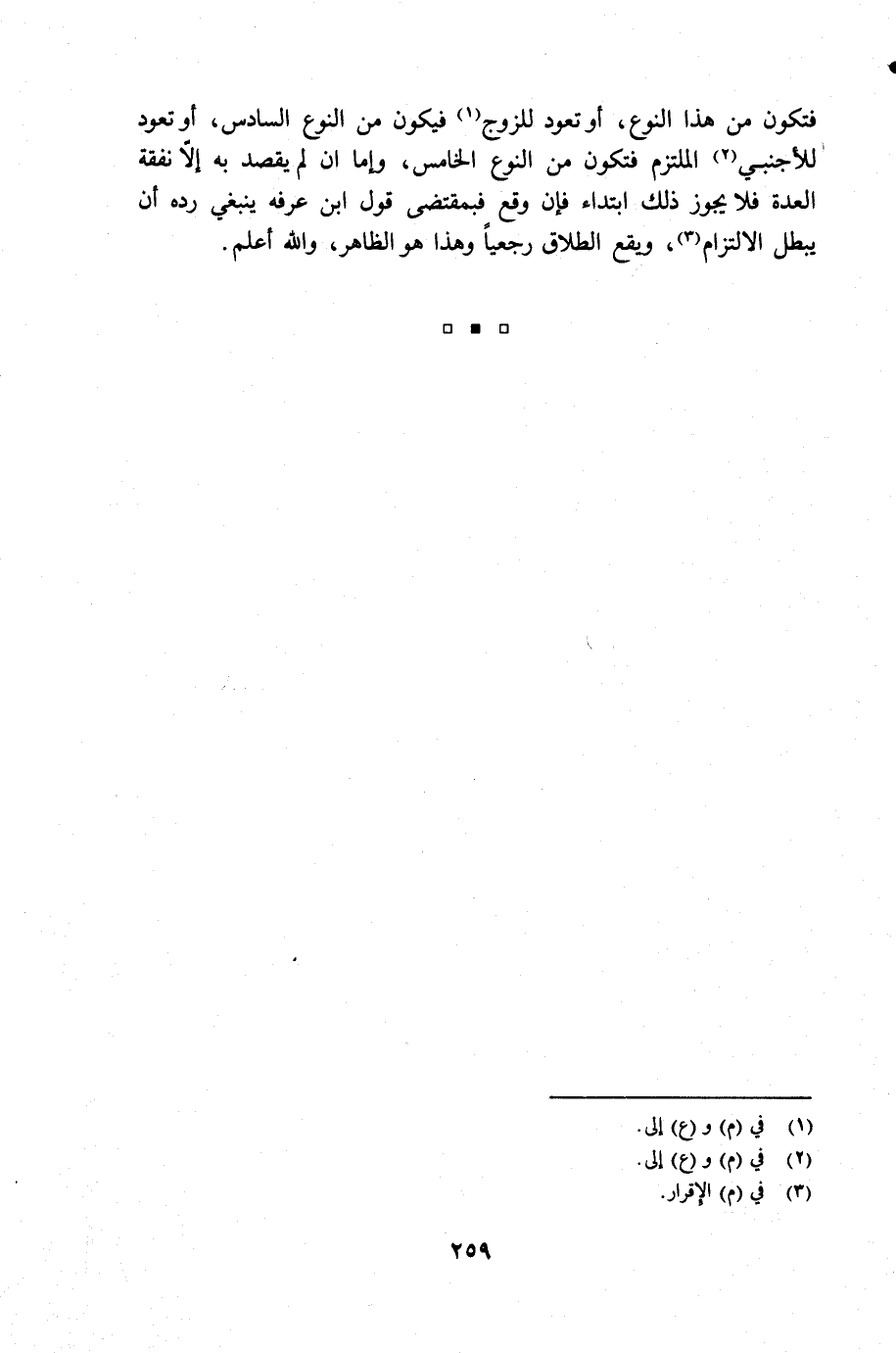 فتكون من هذا النوع، أو تعود للزوج (¬1) فيكون من النوع السادس، أو تعود للأجنبي (¬2) الملتزم فتكون من النوع الخامس، وأما إن لم يقصد به إلا نفقة العدة فلا يجوز ذلك ابتداء فإن وقع فبمقتضى قول ابن عرفه ينبغي رده أن يبطل الإلتزام (¬3)، ويقع الطلاق رجعياً وهذا هو الظاهر. والله أعلم.