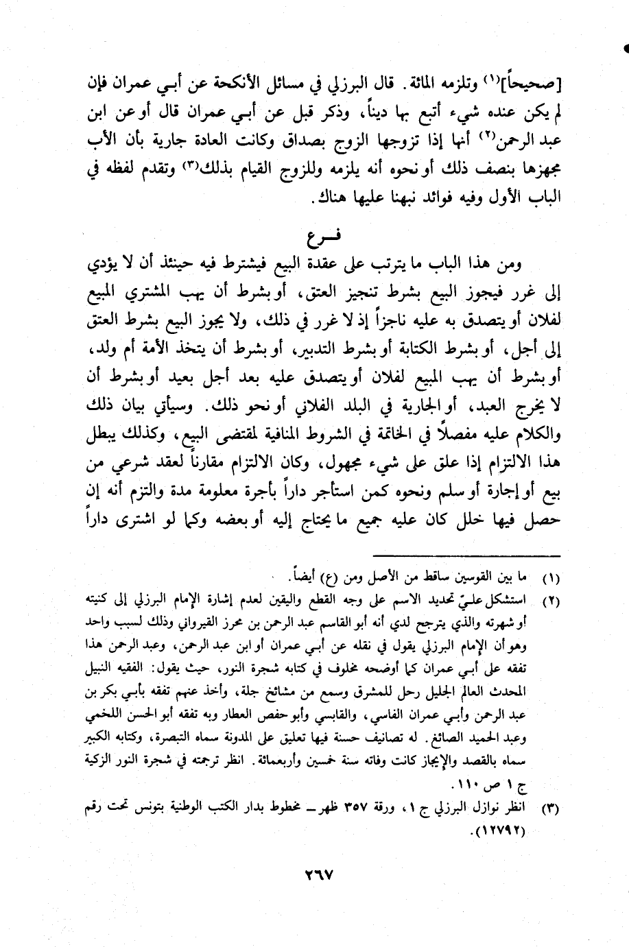 (¬3) أنظر نوازل البرزلي جـ 1 ورقة 257 ظهر مخطوط بدار الكتب الوطنية بتونس تحت رقم 12792.