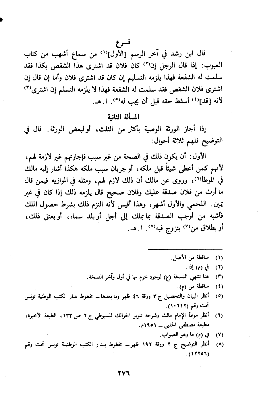 (¬8) أنظر التوضيح جـ 2 ورقة 192 ظهر مخطوط بدار الكتب الوطنية تونس تحت رقم 12256.