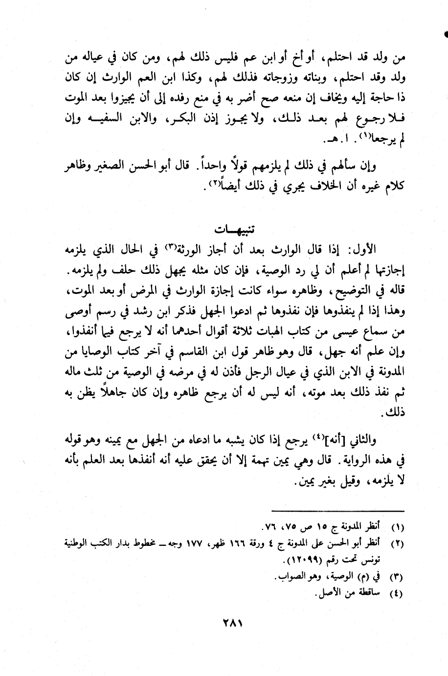 (¬2) أنظر أبو الحسن على المدونة جـ 4 ورقة 166 ظهر، 177 وجه مخطوط بدار الكتب الوطنية تونس تحت رقم 12099.