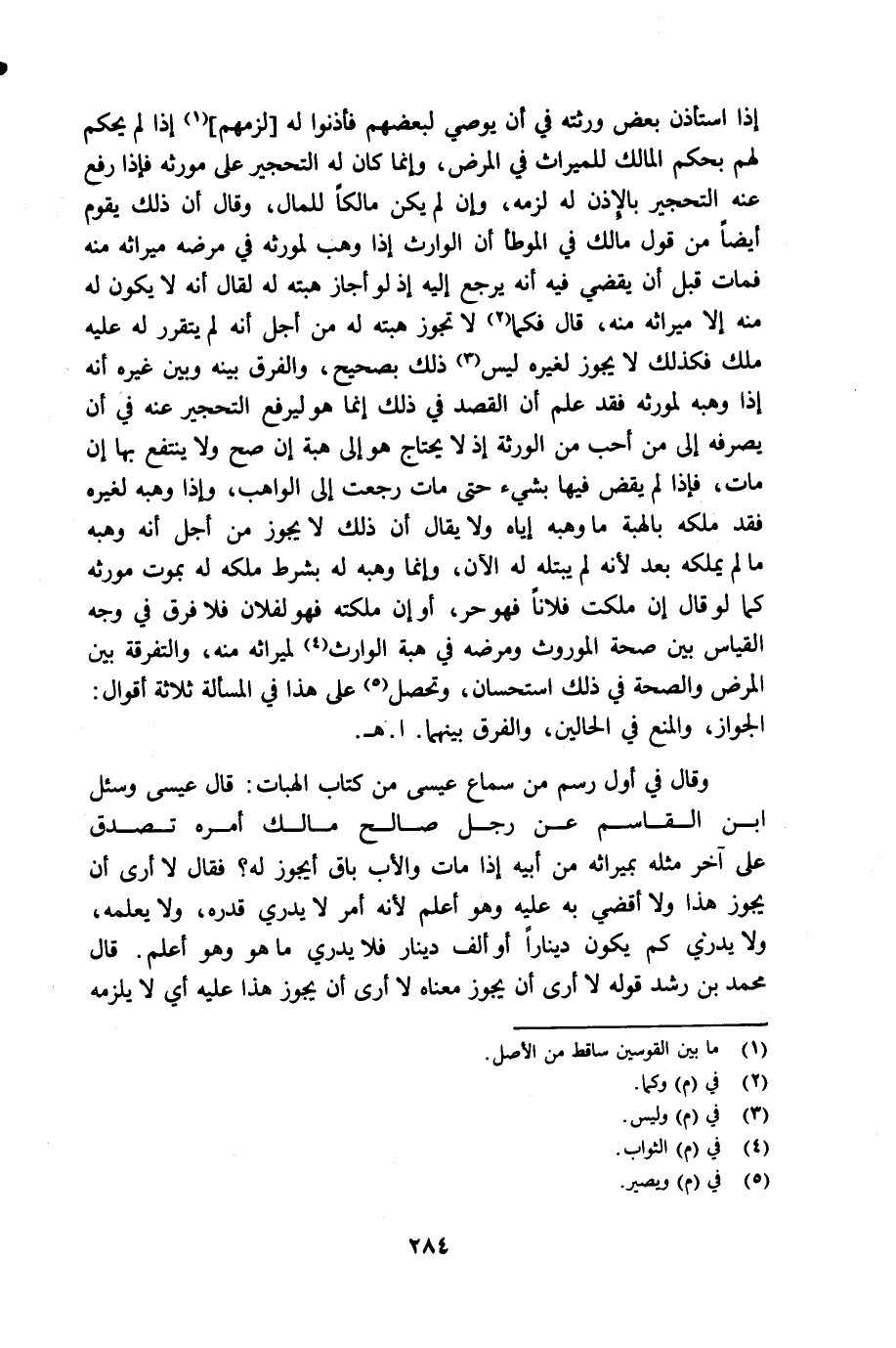 وقال في أول رسم من سماع عيسى من كتاب الهبات قال عيسى وسئل ابن القاسم عن رجل صالح مالك أمره تصدق على آخر مثله بميراثه