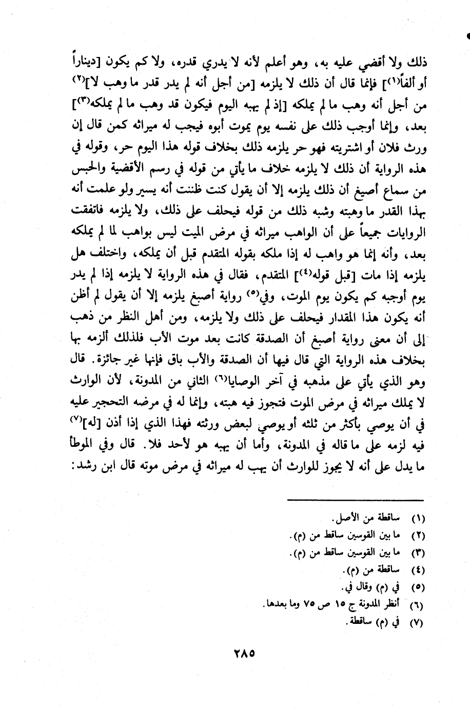 (¬6) أنظر المدونة جـ 15 ص 75 وما بعدها.