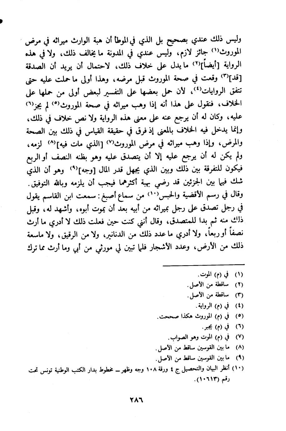 (¬10) أنظر البيان والتحصيل جـ 4 ورقة 108 وجه وظهر مخطوط بدار الكتب الوطنية تونس تحت رقم 10613.