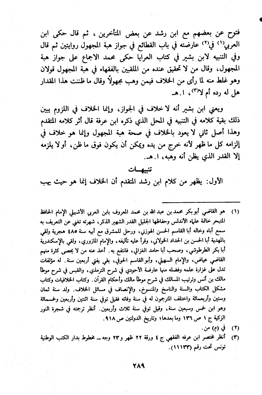 (¬3) أنظر مختصر ابن عرفة الفقهي جـ 4 ورقة 22 ظهر و 23 وجه مخطوط بدار الكتب الوطنية تونس تحت رقم 11133.