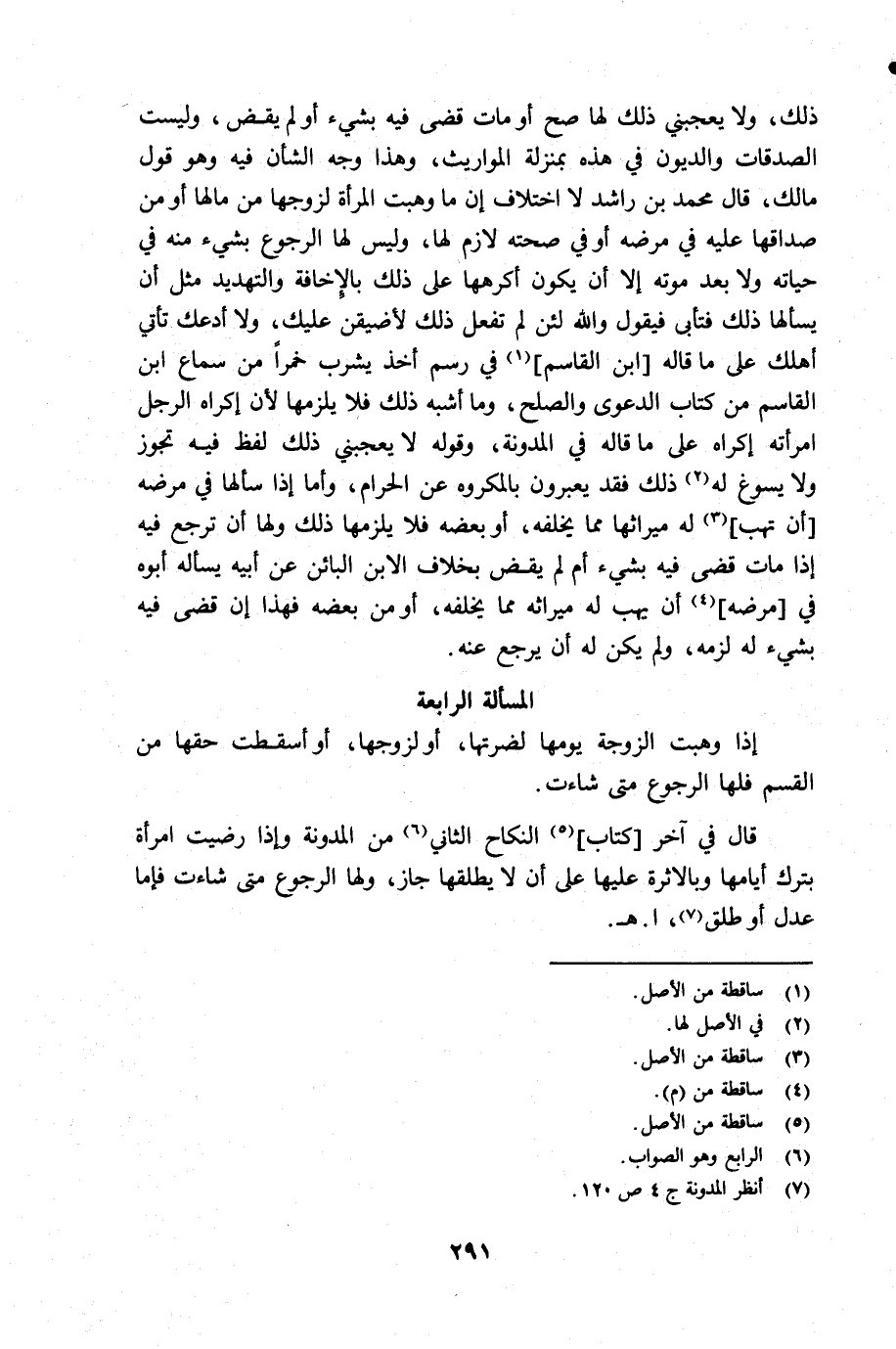 (¬7) أنظر المدونة جـ 4 ص 120.