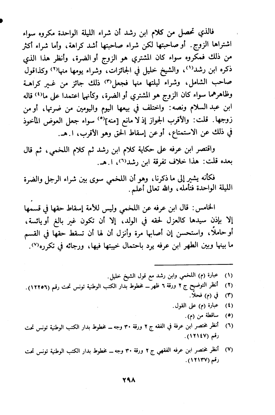 (¬6) أنظر مختصر ابن عرفة في الفقه جـ 2 ورقة 30 وجه مخطوط بدار الكتب الوطنية تونس تحت رقم 12147.