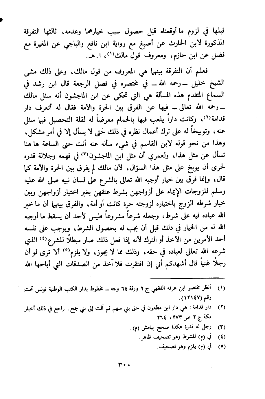 (¬1) أنظر مختصر ابن عرفة الفقهي جـ 2 ورقة 64 وجه مخطوط بدار الكتب الوطنية تونس تحت رقم 12147.