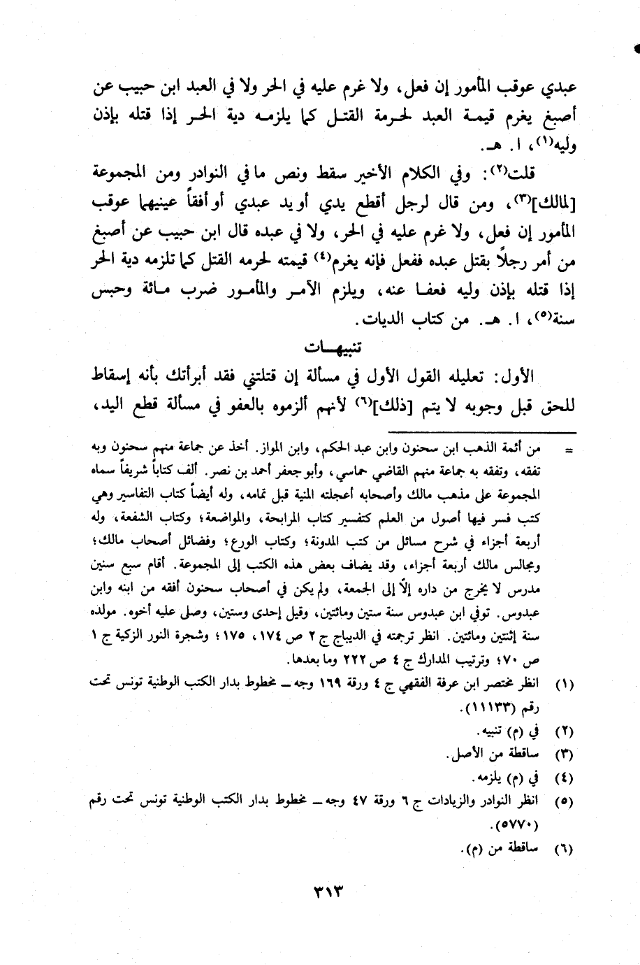 (¬5) أنظر النوادر والزيادات جـ 6 ورقة 47 وجه مخطوط بدار الكتب الوطنية تونس تحت رقم 5770.