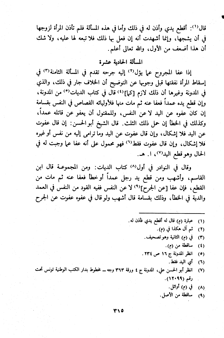 (¬7) أنظر أبو الحسن على المدونة جـ 4 ورقة 363 وجه مخطوط بدار الكتب الوطنية تونس تحت رقم 12099.