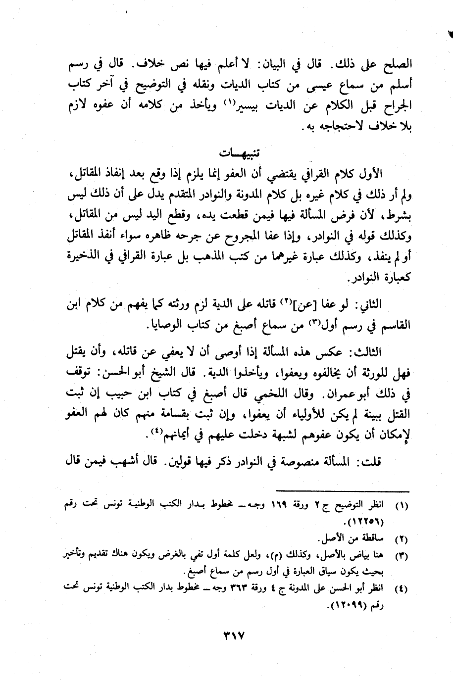 (¬4) أنظر أبو الحسن على المدونة جـ 4 ورقة 363 وجه مخطوط بدار الكتب الوطنية تونس تحت رقم 12099.