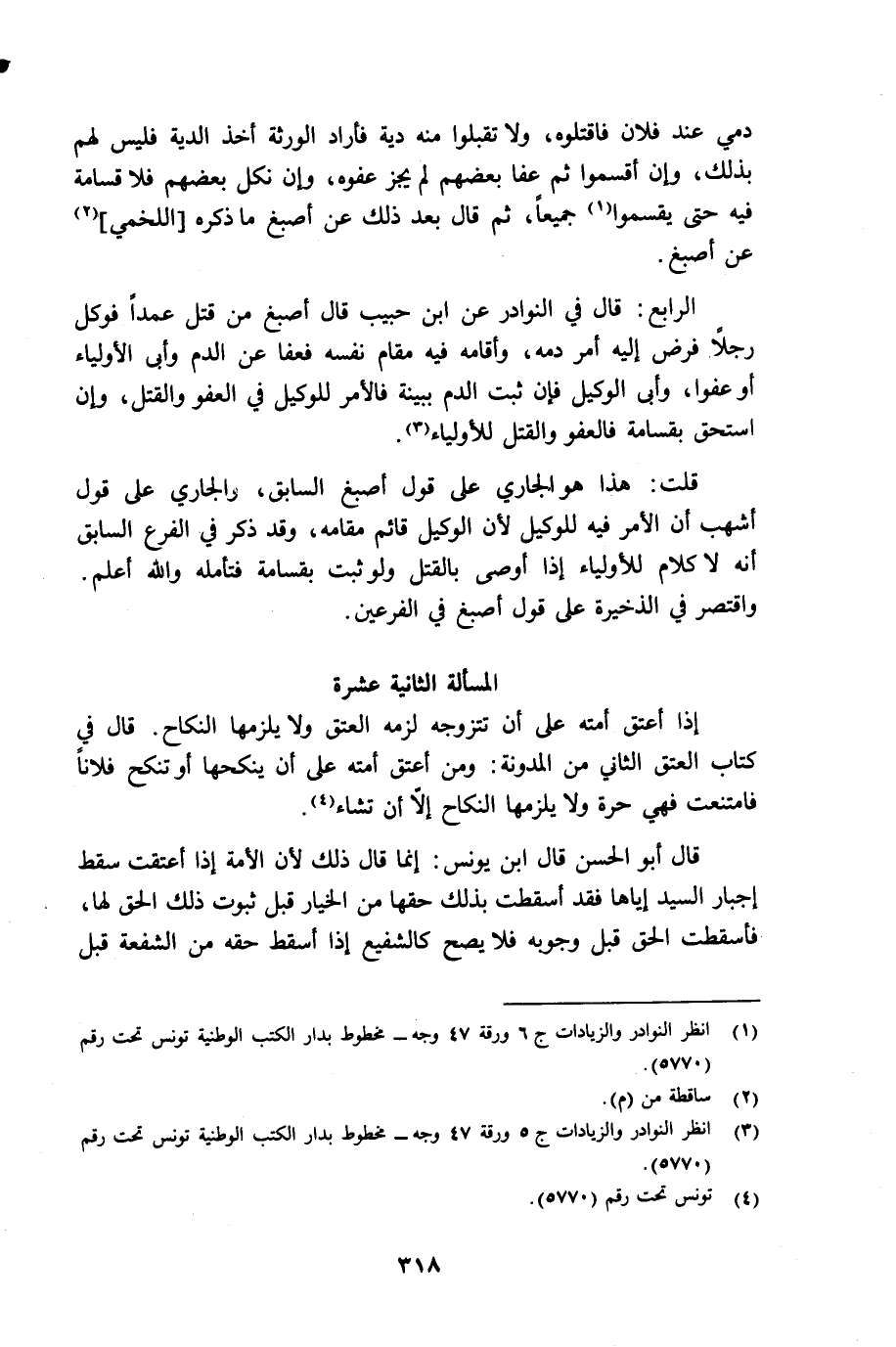 (¬3) أنظر النوادر والزيادات جـ 5 ورقة 47 وجه مخطوط بدار الكتب الوطنية تونس تحت رقم 5770.
