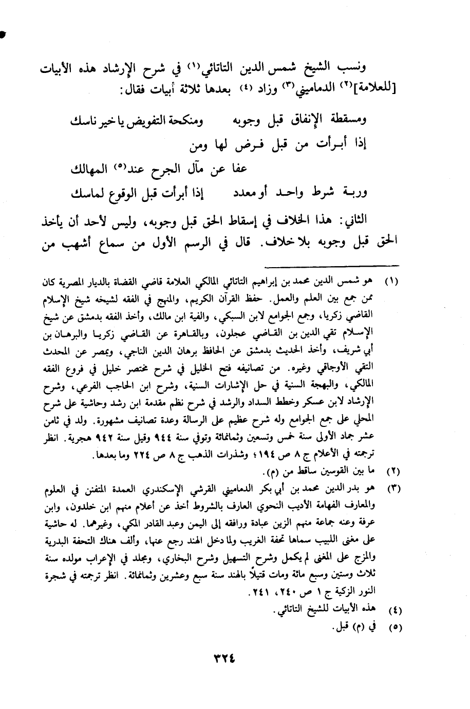 ونسب الشيخ شمس الدين التاتائي (¬1) في شرح الإرشاد هذه الأبيات [للعلامة] (¬2) الدماميني (¬3) وزاد (¬4) بعدها ثلاثة أبيات فقال: