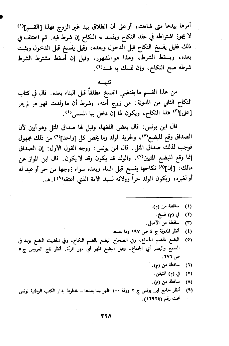 (¬9) أنظر جامع ابن يونس جـ 2 ورقة 100 ظهر وما بعدها مخطوط بدار الكتب الوطنية تونس تحت رقم 12924.