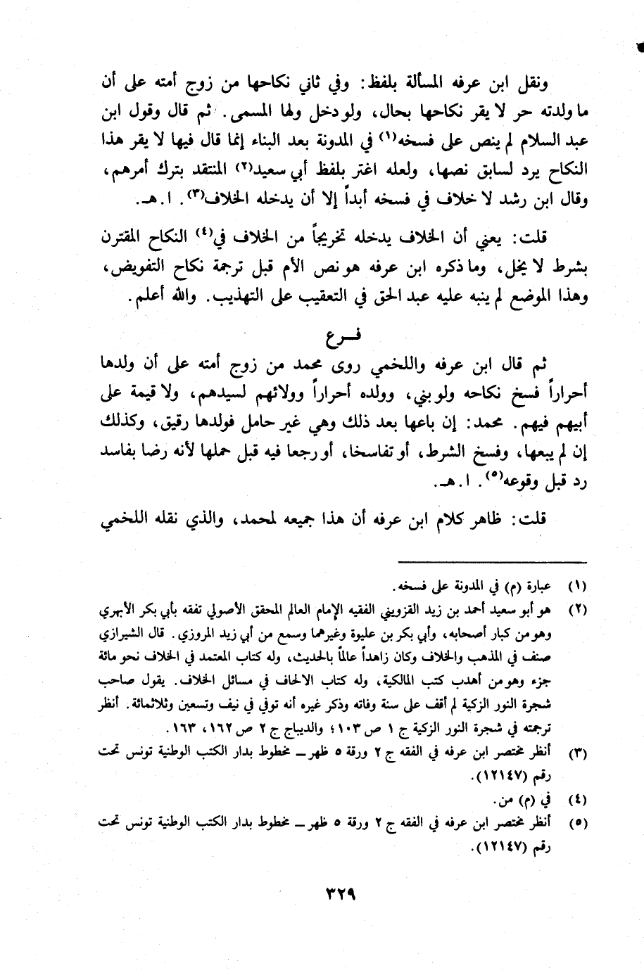 (¬5) أنظر مختصر ابن عرفة في الفقه جـ 2 ورقة 5 ظهر مخطوط بدار الكتب الوطنية تونس تحت رقم 12147.