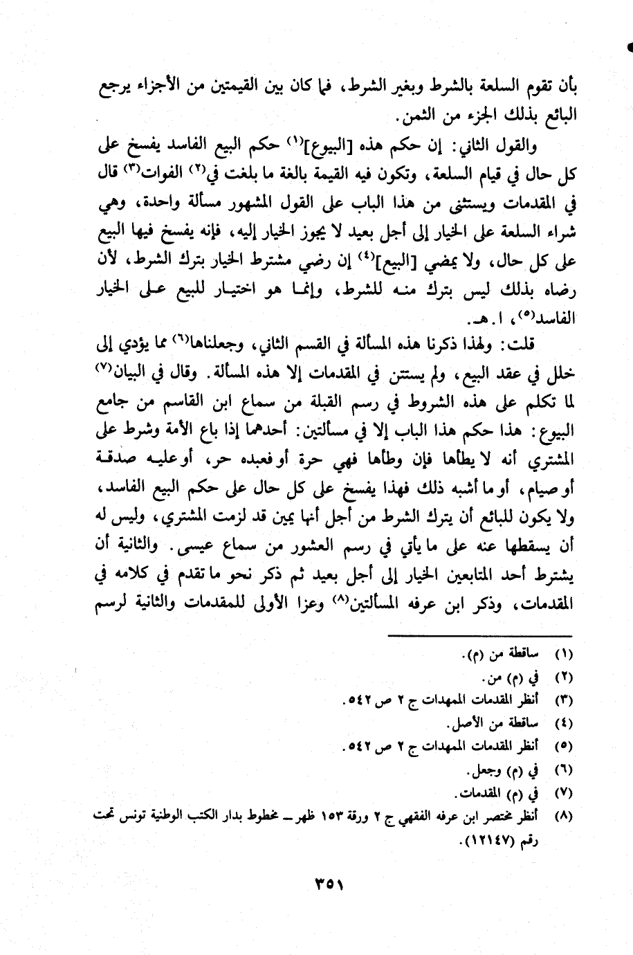(¬8) أنظر مختصر ابن عرفة الفقهي جـ 2 ورقة 153 ظهر مخطوط بدار الكتب الوطنية تونس تحت رقم 12147.