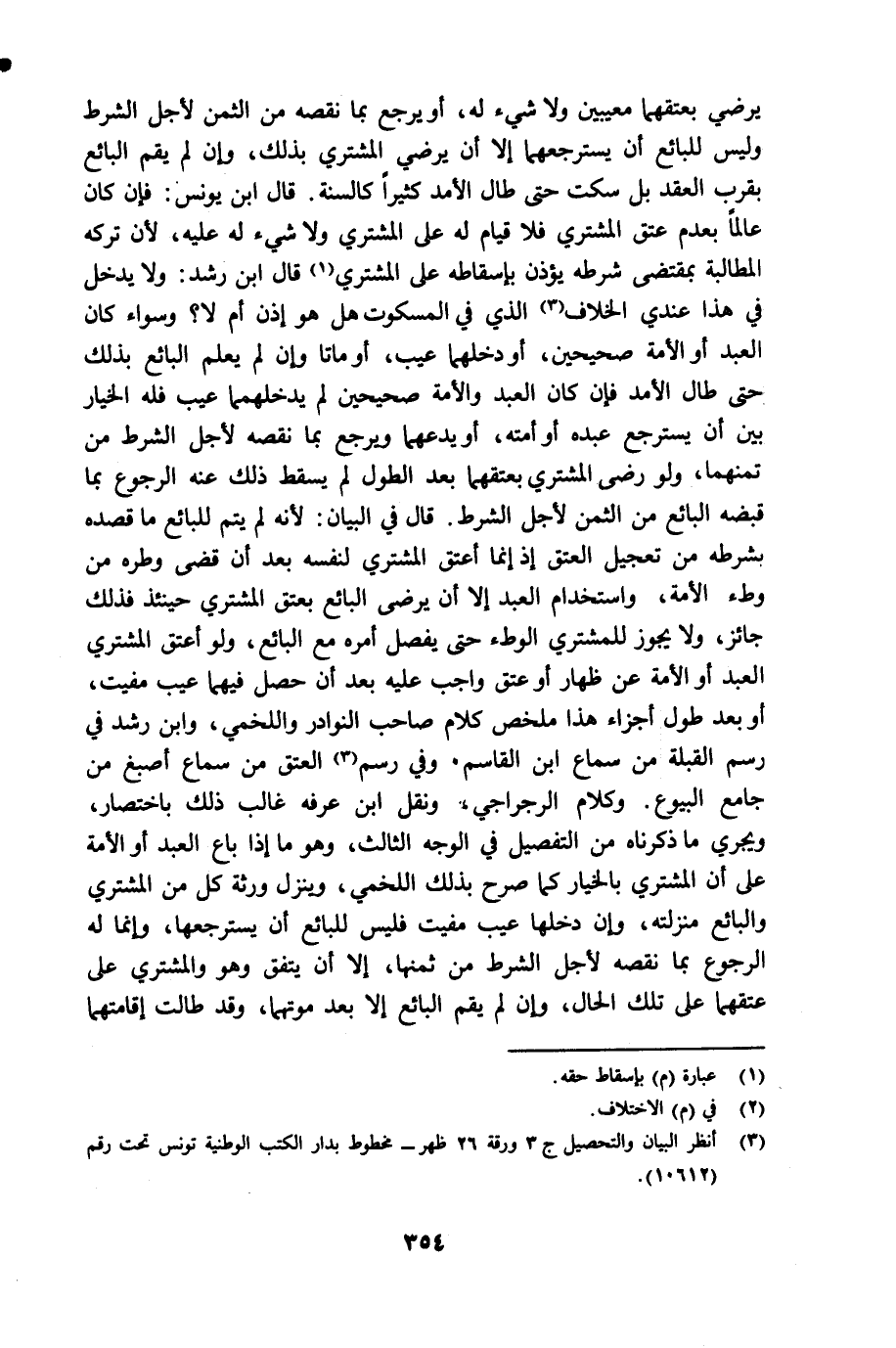 (¬3) أنظر البيان والتحصيل جـ 3 ورقة 26 ظهر مخطوط بدار الكتب الوطنية تونس تحت رقم 10612.
