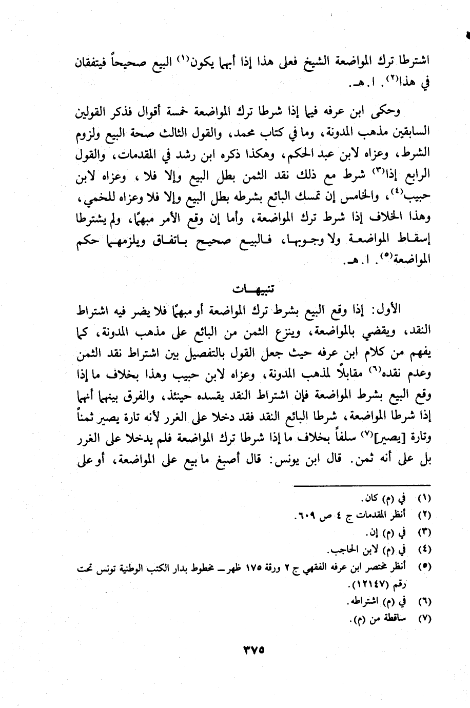 (¬5) أنظر مختصر ابن عرفة الفقهى جـ 2 ورقة 175 ظهر مخطوط بدار الكتب الوطنية تونس تحت رقم 12147.