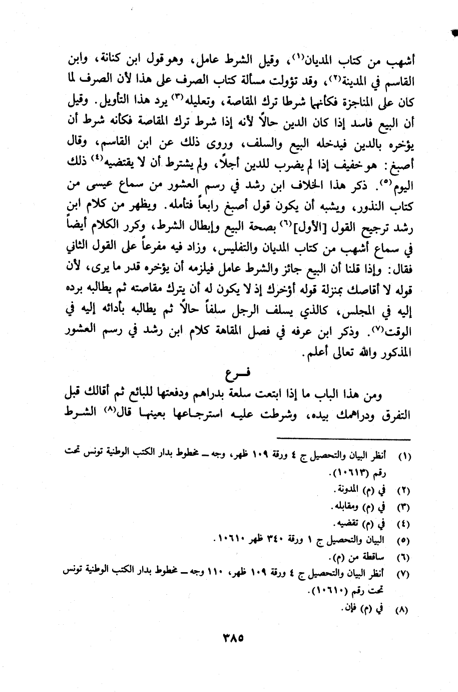 (¬1) أنظر البين والتحصيل جـ 4 ورقة 109 ظهر، 110 وجه مخطوط بدار الكتب الوطنية تونس تحت رقم 10613.
