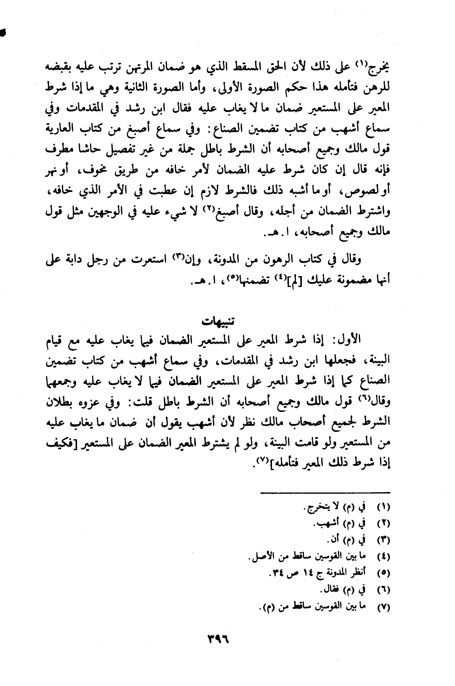 الأول: إذا شرط المعير على المستعير الضمان فيما يغاب عليه مع قيام البينة، فجعلها ابن رشد في المقدمات، وفي سماع أشهب من كتاب تضمين الصناع كما إذا شرط المعير على المستعير الضمان فيما لا يغاب عليه وجمعهما وقال (¬6) قول مالك وجميع أصحابه أن الشرط باطل قلت: وفي عزوه بطلان الشرط لجميع أصحاب مالك نظر لأن أشهب يقول أن ضمان ما يغاب عليه من المستعير ولو قامت البينة، ولو لم يشترط المعير الضمان على