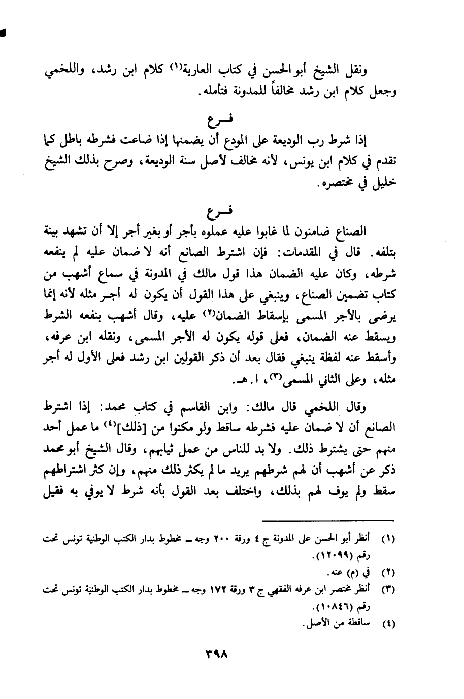 (¬3) أنظر مختصر ابن عرفة الفقهي جـ 3 ورقة 172 وجه مخطوط بدار الكتب الوطنية تونس تحت رقم 10846.