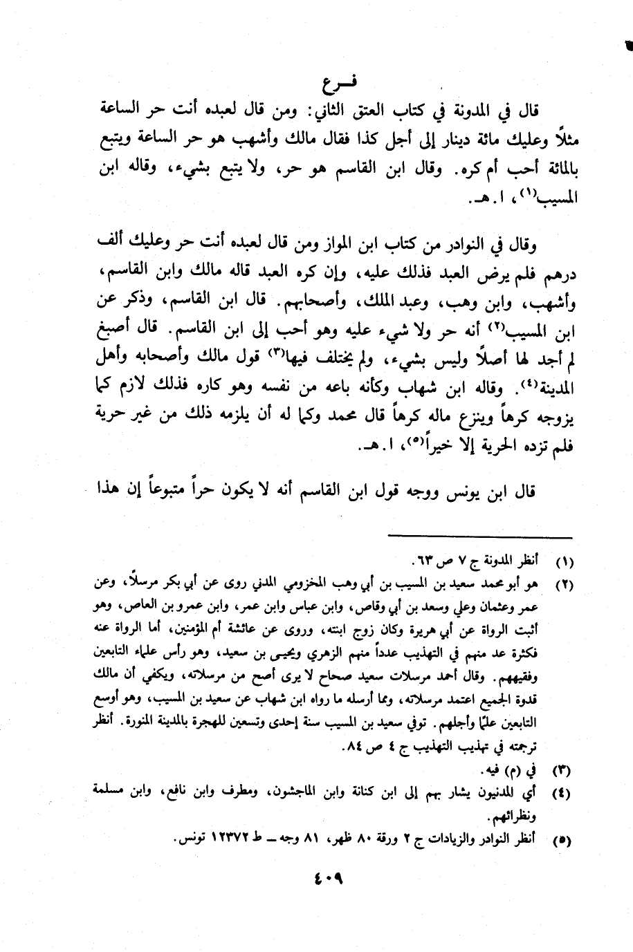 (¬5) أنظر النوادر والزيادات جـ 2 ورقة 80 ظهر، 81 وجه ط 12372 تونس