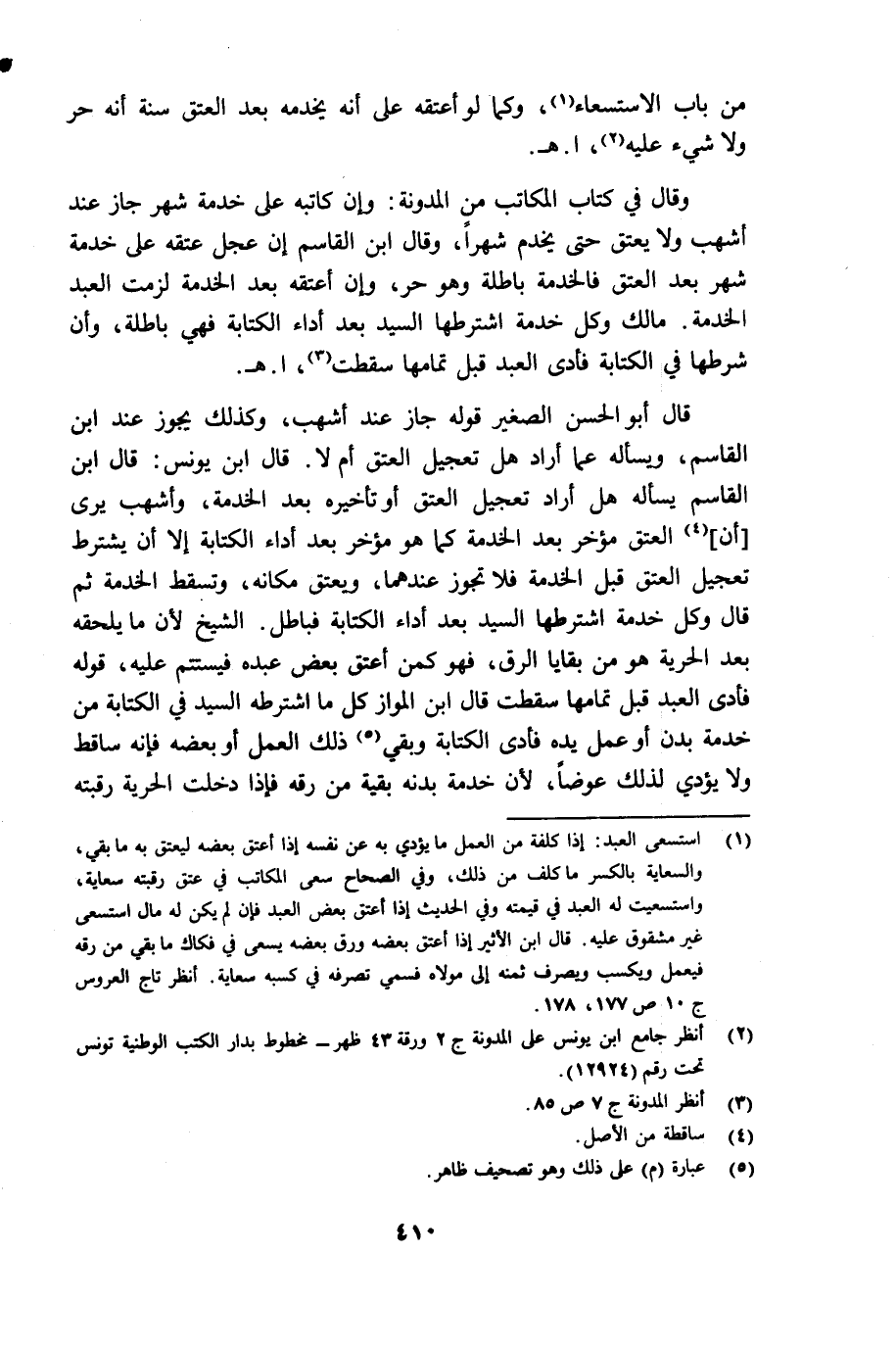 (¬2) أنظر جامع ابن يونس على المدونة جـ 2 ورقة 43 ظهر مخطوط بدار الكتب الوطنية تونس تحت رقم 12924.