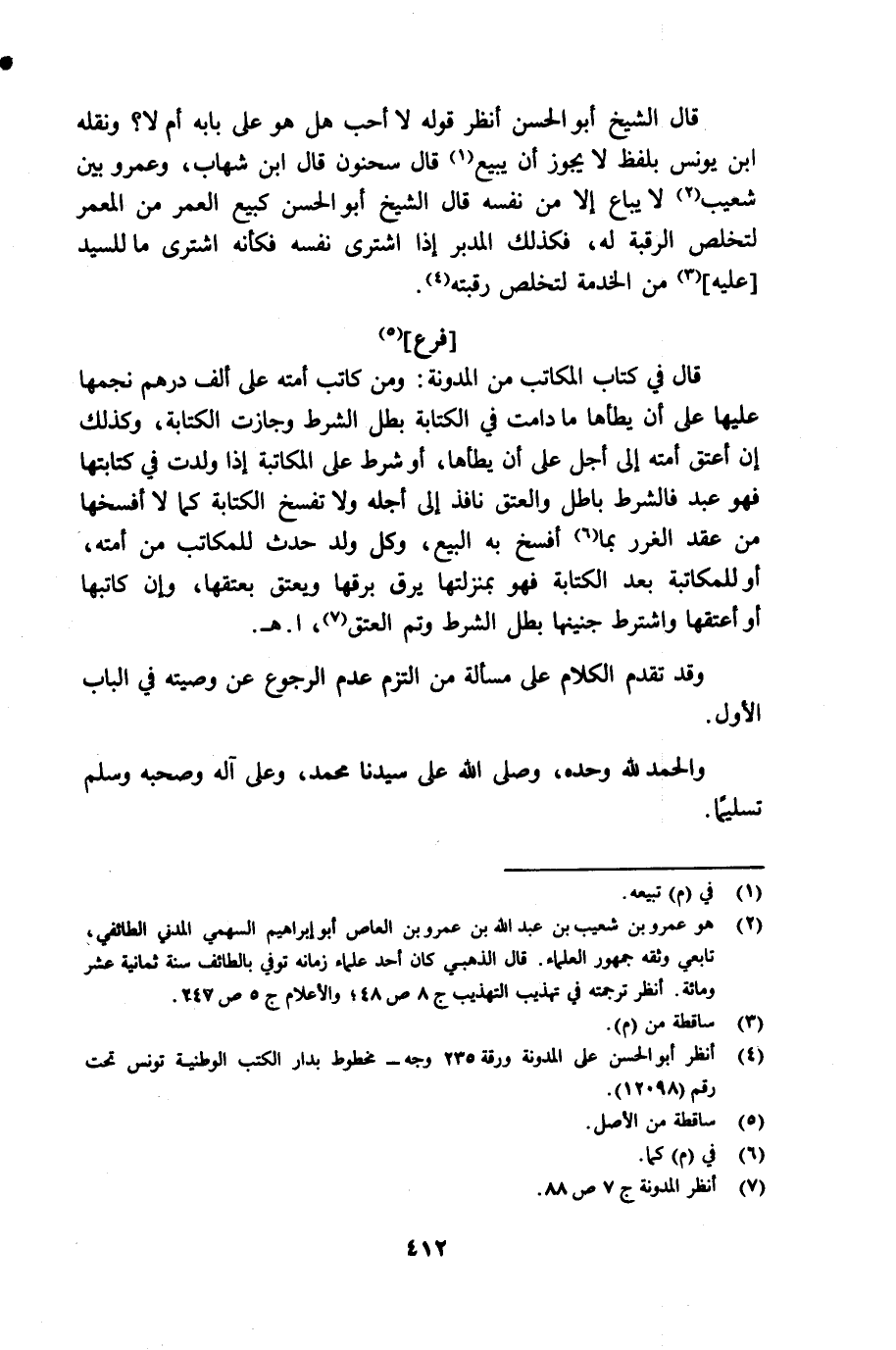 (¬4) أنظر أبو الحسن على المدونة ورقة 236 وجه مخطوط بدار الكتب الوطنية تونس تحت رقم 12098.