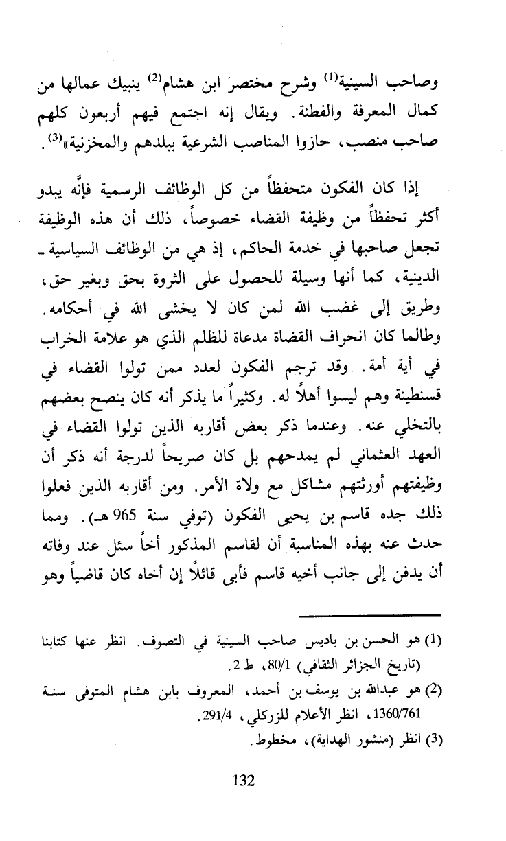 وصاحب السينية (¬1) وشرح مختصر ابن هشام (¬2) ينبيك عمالها من كمال المعرفة والفطنة. ويقال إنه اجتمع فيهم أربعون كلهم صاحب منصب، حازوا المناصب الشرعية ببلدهم والمخزنية) (¬3).