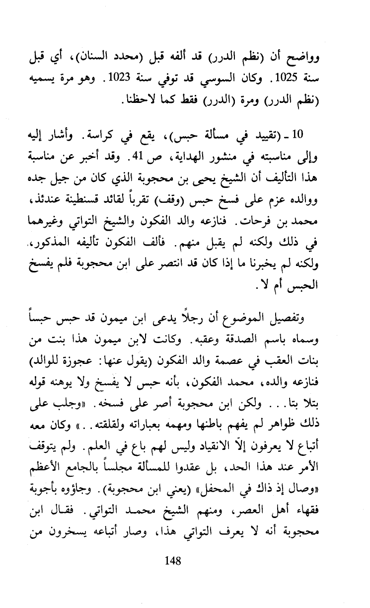 وتفصيل الموضوع أن رجلا يدعى ابن ميمون قد حبس حبسا وسماه باسم الصدقة وعقبه. وكانت لابن ميمون هذا بنت من بنات العقب في عصمة والد الفكون (يقول عنها: عجوزة للوالد) فنازعه والده، محمد الفكون، بأنه حبس لا يفسخ ولا يوهنه قوله بتلا بتا ولكن ابن محجوبة أصر على فسخه. (وجلب على ذلك ظواهر لم يفهم باطنها ومهمه بعباراته ولقلقته ..) وكان معه أتباع لا يعرفون إلا الانقياد وليس لهم باع في العلم. ولم يتوقف الأمر عند هذا الحد، بل عقدوا للمسألة مجلسا بالجامع الأعظم (وصال إذ ذاك في المحفل) (يعني ابن محجوبة). وجاؤوه بأجوبة فقهاء أهل العصر، ومنهم الشيخ محمد التواني فقال ابن محجوبة أنه لا يعرف التواتي هذا، وصار أتباعه يسخرون من