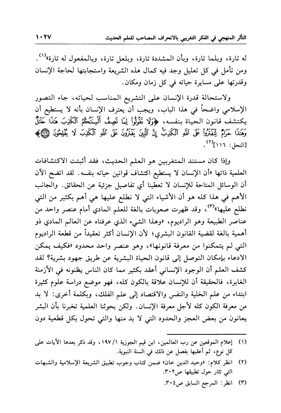 (¬2) انظر كلام: "وحيد الدين خان" ضمن كتاب وجوب تطبيق الشريعة الإِسلامية والشبهات التي تثار حول تطبيقها ص 302.