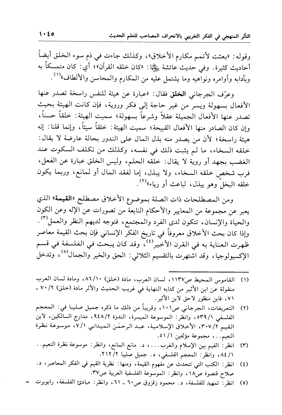 (¬3) انظر: القيم بين الإِسلام والغرب. . . .، د. مانع المانع، وانظر: موسوعة نظرة النعيم .. 1/ 84، وانظر: المعجم الفلسفي، د. جميل صليبا 2/ 212.