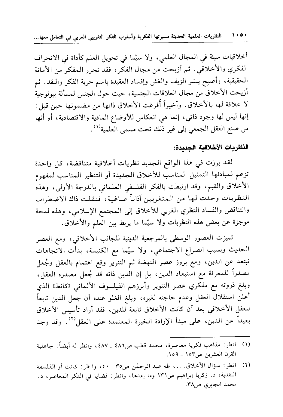 (¬2) انظر: سؤال الأخلاق. . . .، طه عبد الرحمن ص 35 - 40، وانظر: كانت أو الفلسفة النقدية، د. زكريا إبراهيم ص 131 وما بعدها، وانظر: قضايا في الفكر المعاصر، د. محمَّد الجابري ص 38.
