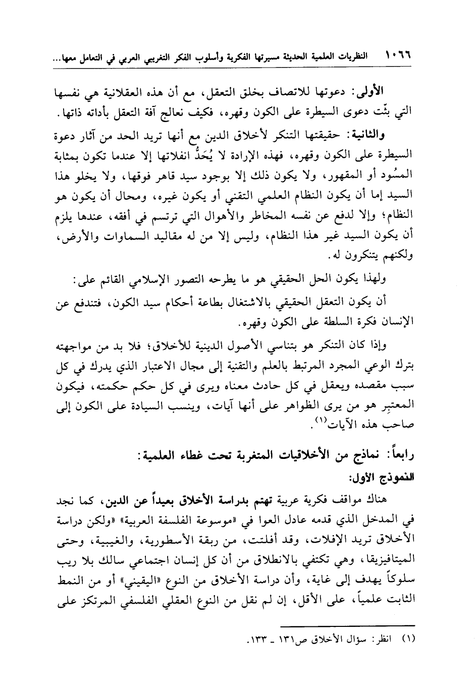 (¬1) انظر: سؤال الأخلاق ص 131 - 133.