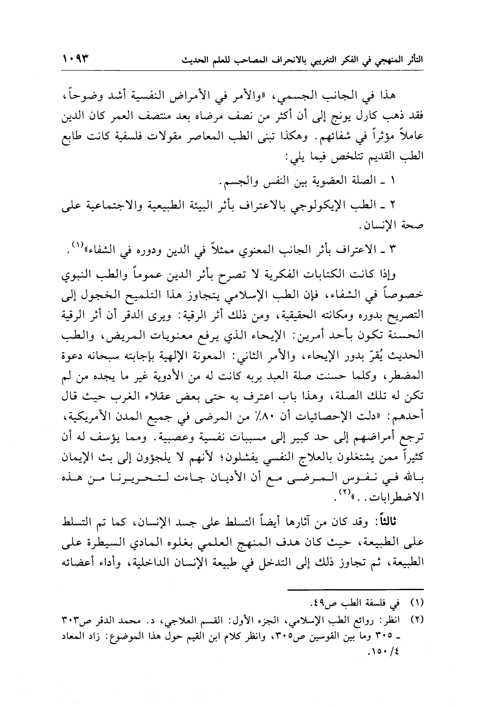 (¬2) انظر: روائع الطب الإِسلامي، الجزء الأول: القسم العلاجي، د. محمَّد الدقر ص 303 - 305 وما بين القوسين ص 305، وانظر كلام ابن القيم حول هذا الموضوع: زاد المعاد 4/ 150.