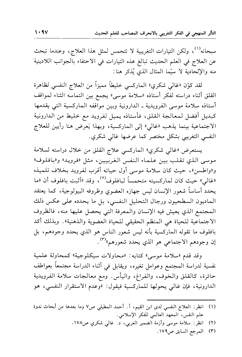 (¬1) انظر: العلاج النفسي لدى ابن القيم، أ. أحمد المطيلي ص 7 وما بعدها من أبحاث ندوة علم النفس، المعهد العالمي للفكر الإِسلامي.