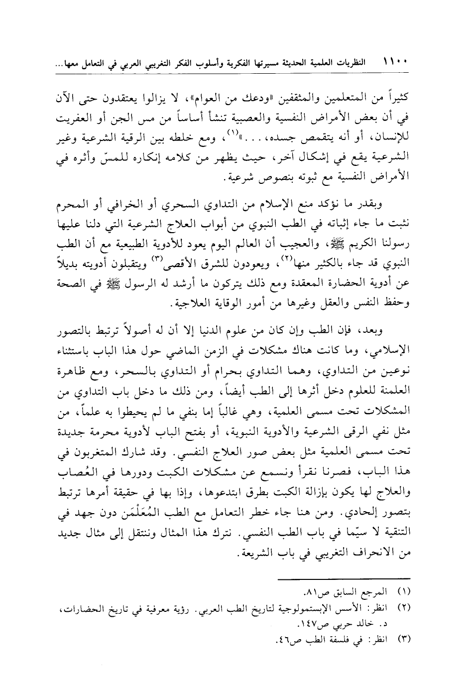 (¬2) انظر: الأسس الإبستمولوجية لتاريخ الطب العربي. رؤية معرفية في تاريخ الحضارات، د. خالد حربي ص 147.