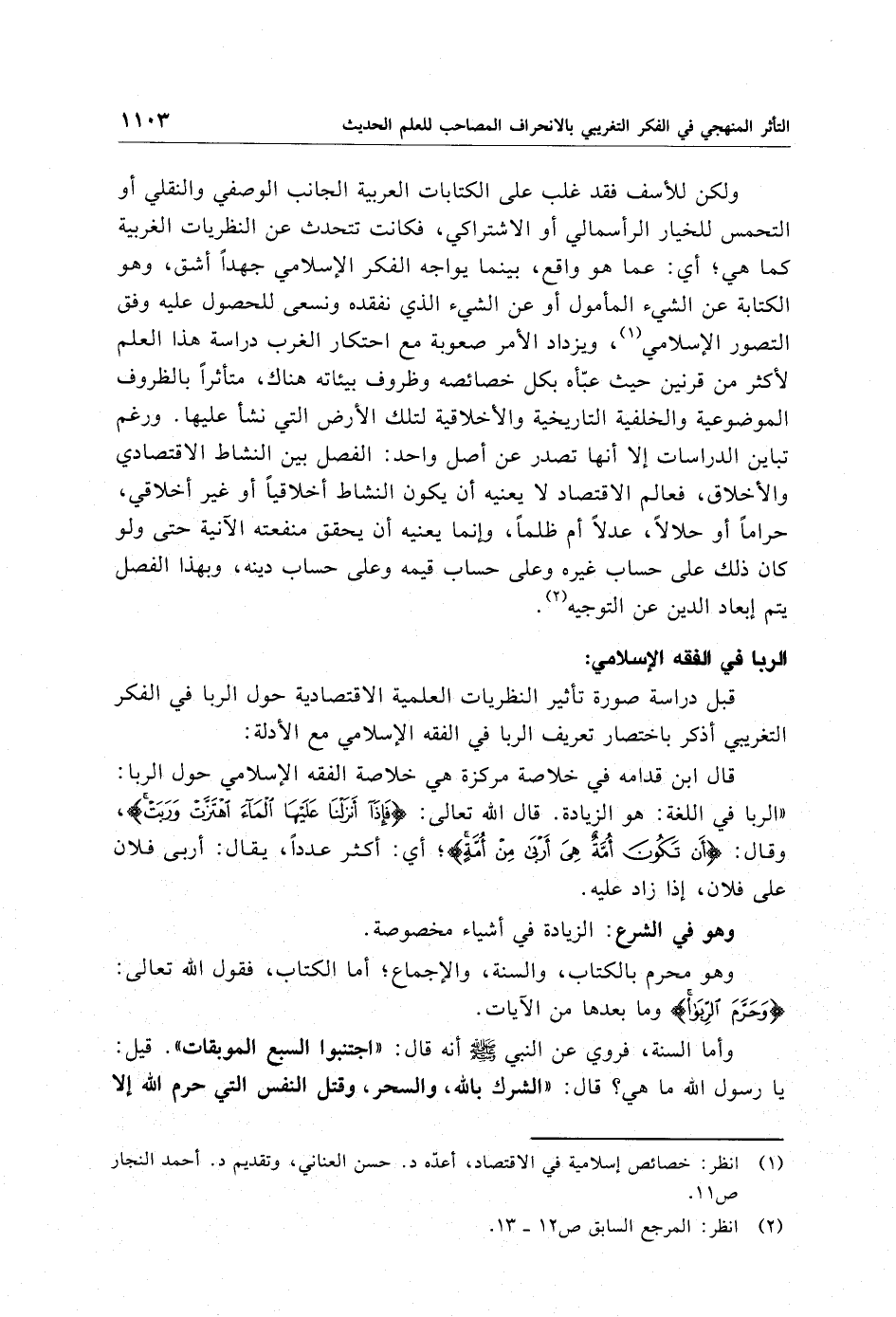 قبل دراسة صورة تأثير النظريات العلمية الاقتصادية حول الربا في الفكر التغريبي أذكر باختصار تعريف الربا في الفقه الإِسلامي مع الأدلة:
