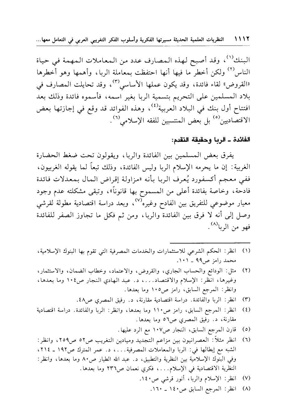 (¬6) انظر مثلًا: العصرانيون بين مزاعم التجديد وميادين التغريب ص 52 ص 259، وانظر: الشبه مع إبطالها في: الربا والمعاملات المصرفية. . . .، د. عمر المترك ص 192 - 214، وفي البنوك الإِسلامية بين النظرية والتطبيق، د. عبد الله الطيار ص 80 وما بعدها، وانظر: النظرية الاقتصادية في الإِسلام. . . .، فكري نعمان ص 236 وما بعدها.