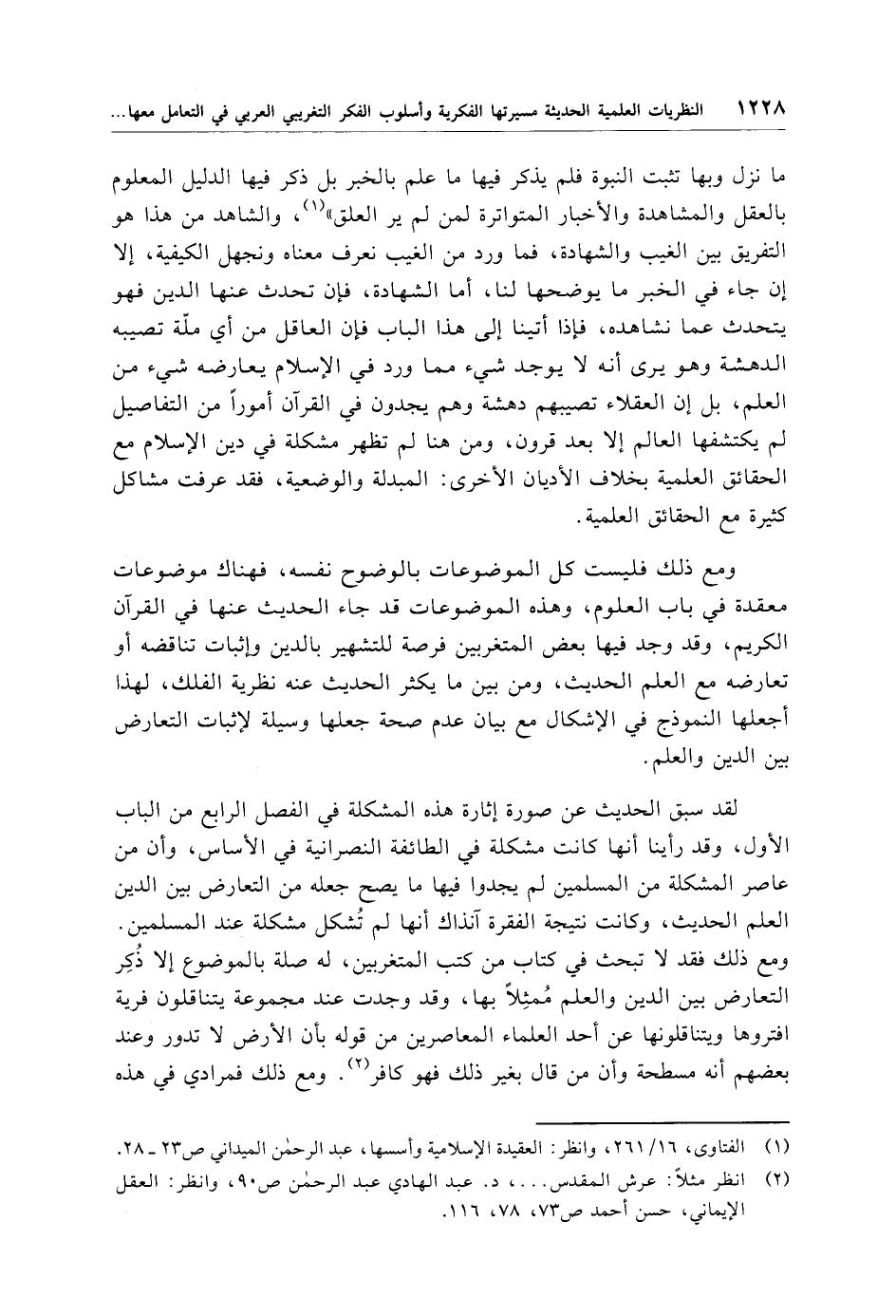 (¬2) انظر مثلًا: عرش المقدس. . . .، د. عبد الهادي عبد الرحمن ص 90، وانظر: العقل الإيماني، حسن أحمد ص 73، 78، 116.