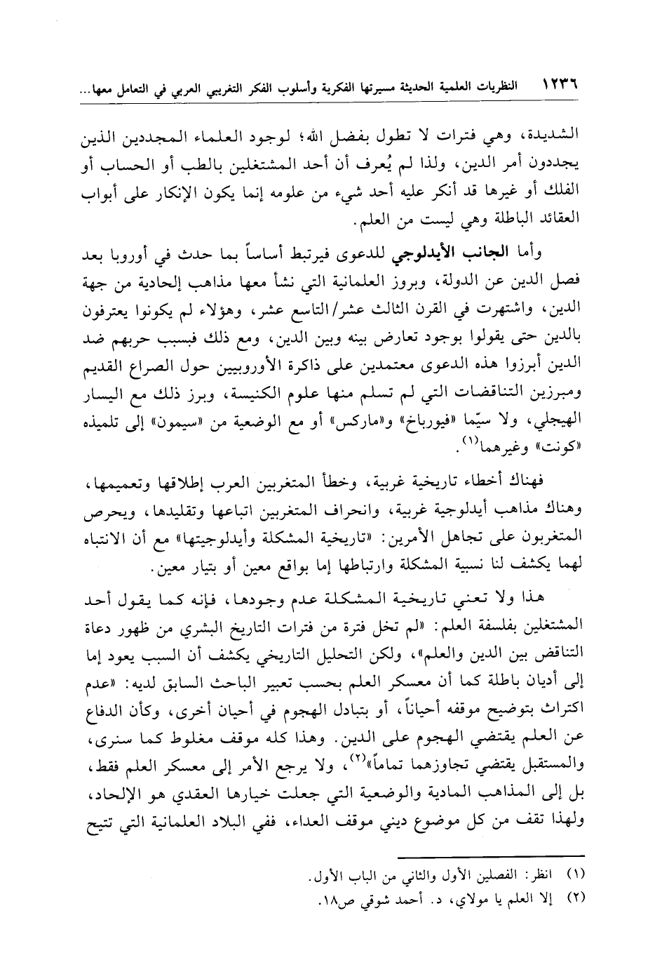 كتاب النظريات العلمية الحديثة مسيرتها الفكرية وأسلوب الفكر التغريبي العربي في التعامل معها دراسة نقدية (اسم الجزء: 2)