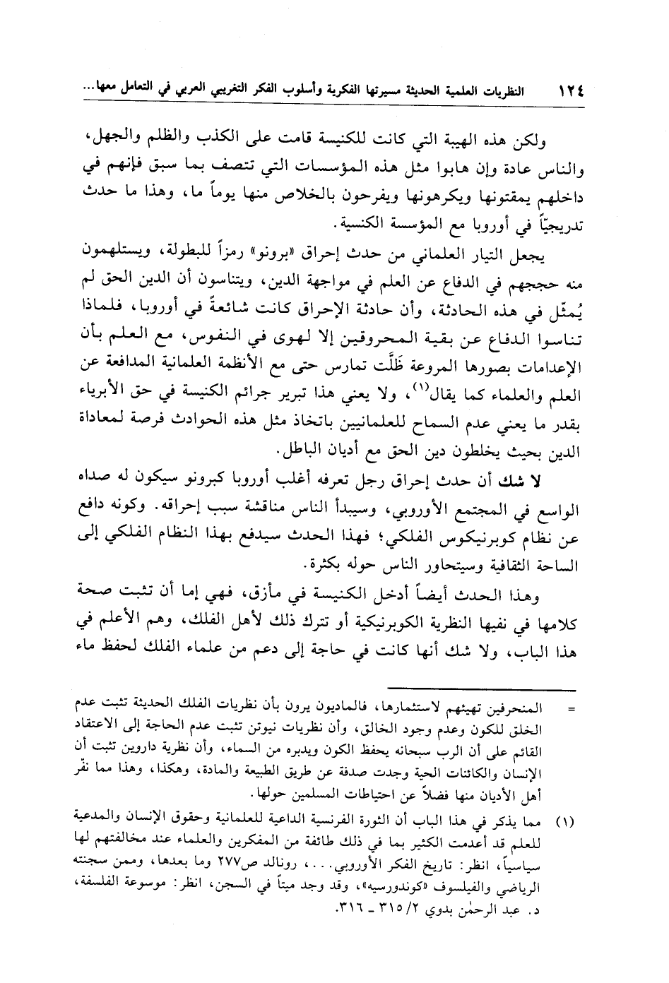(¬1) مما يذكر في هذا الباب أن الثورة الفرنسية الداعية للعلمانية وحقوق الإنسان والمدعية للعلم قد أعدمت الكثير بما في ذلك طائفة من المفكرين والعلماء عند مخالفتهم لها سياسيًا، انظر: تاريخ الفكر الأوروبي. . . .، رونالد ص 277 وما بعدها، وممن سجنته الرياضي والفيلسوف "كوندورسيه"، وقد وجد ميتًا في السجن، انظر: موسوعة الفلسفة، د. عبد الرحمن بدوي 2/ 315 - 316.