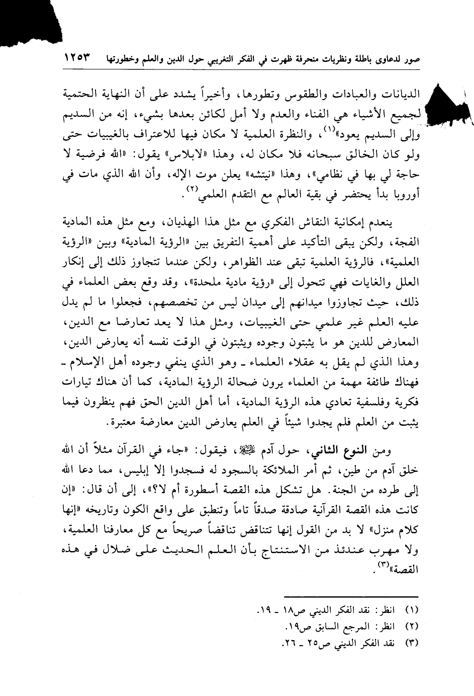 (¬1) انظر: نقد الفكر الديني ص 18 - 19.