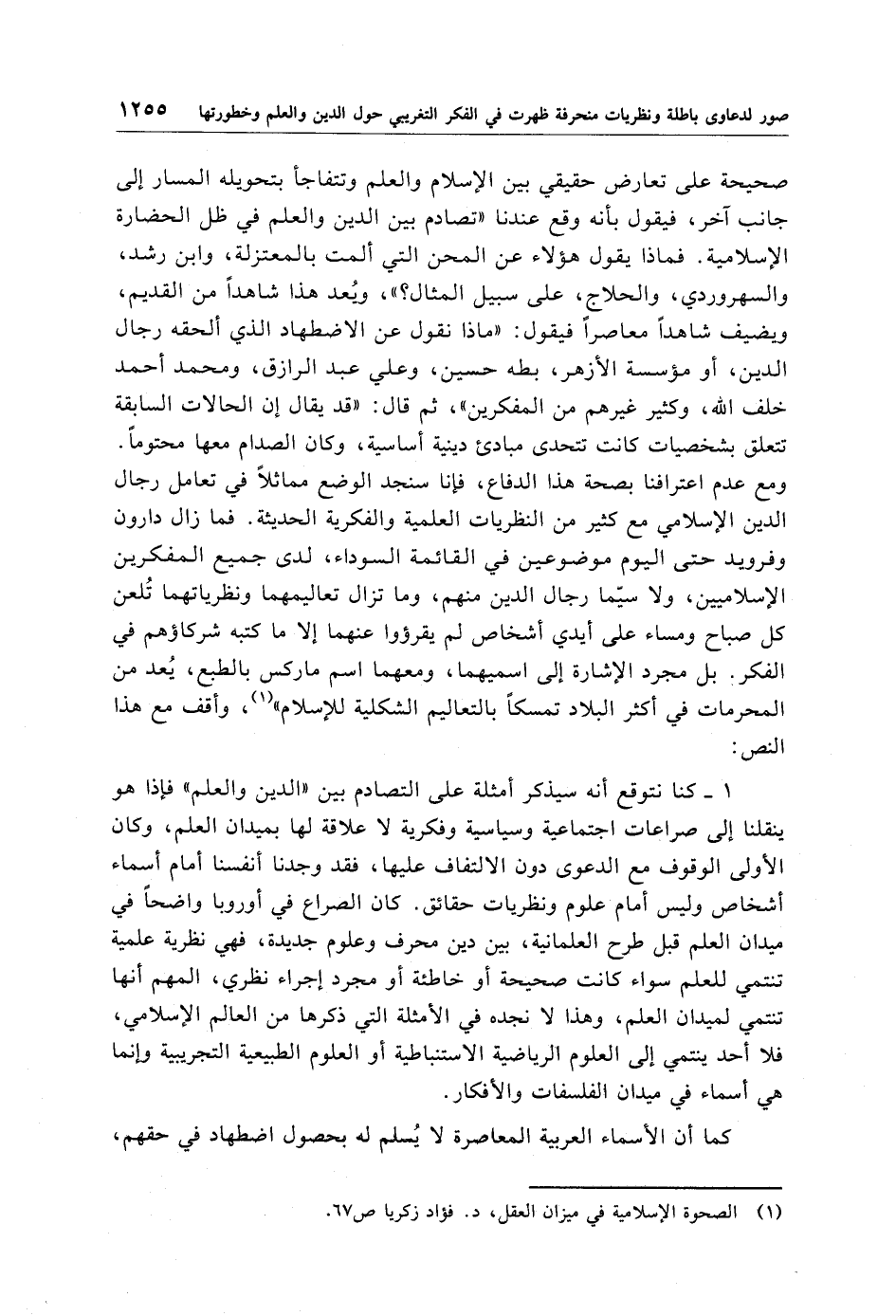 (¬1) الصحوة الإِسلامية في ميزان العقل، د. فؤاد زكريا ص 67.