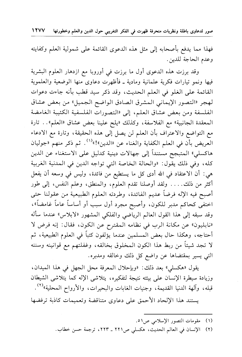 (¬2) الإنسان في العالم الحديث، هكسلي ص 221 - 223، ترجمة حسن خطاب.