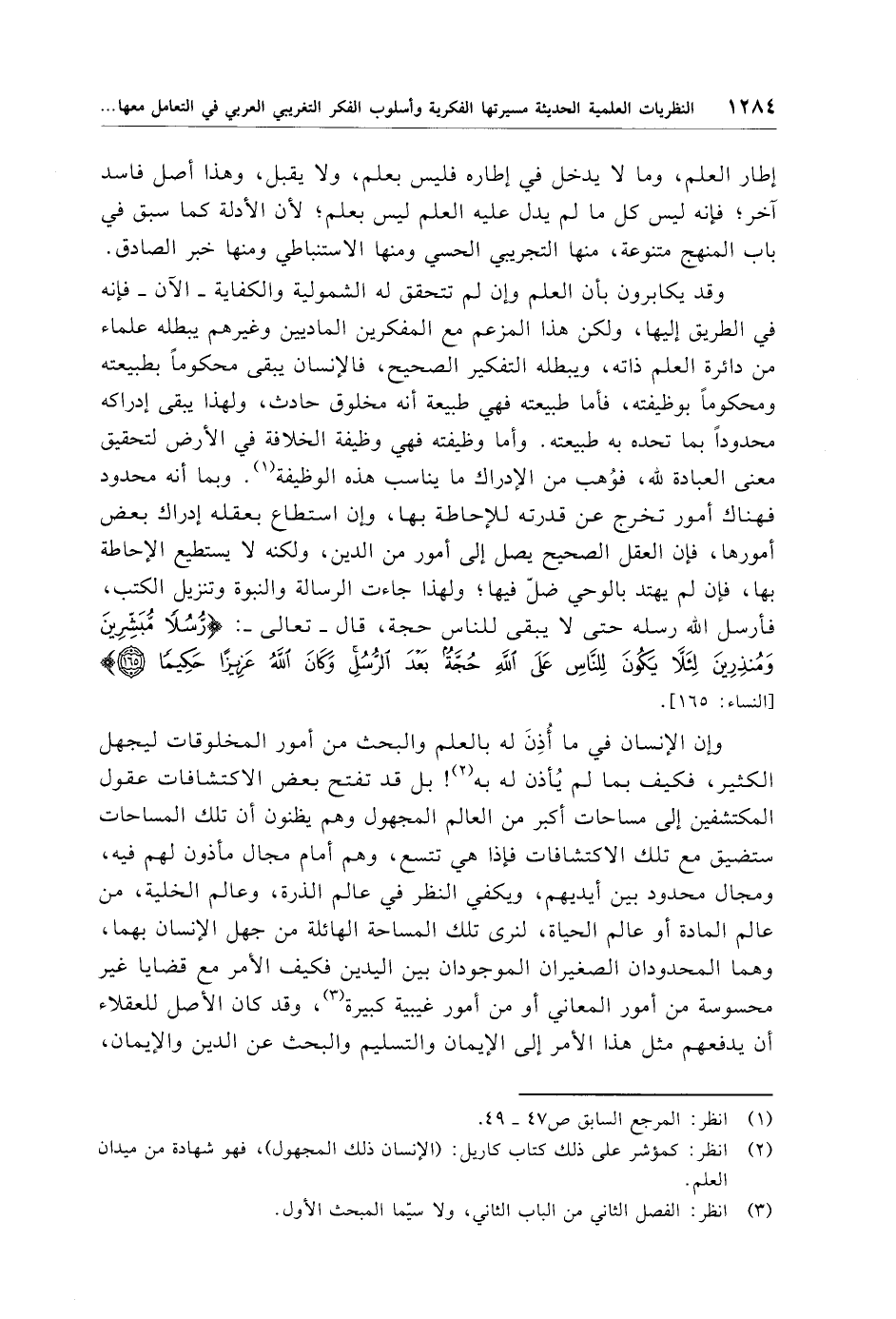 (¬2) انظر: كمؤشر على ذلك كتاب كاريل: (الإنسان ذلك المجهول)، فهو شهادة من ميدان العلم.