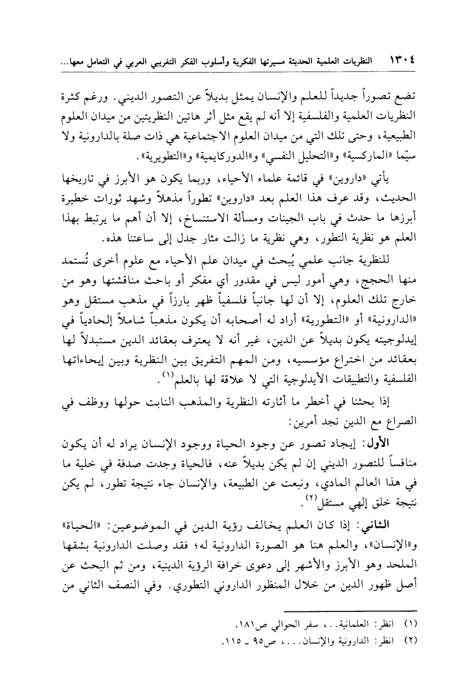 (¬2) انظر: الدارونية والإنسان. . . .، ص 95 - 115.