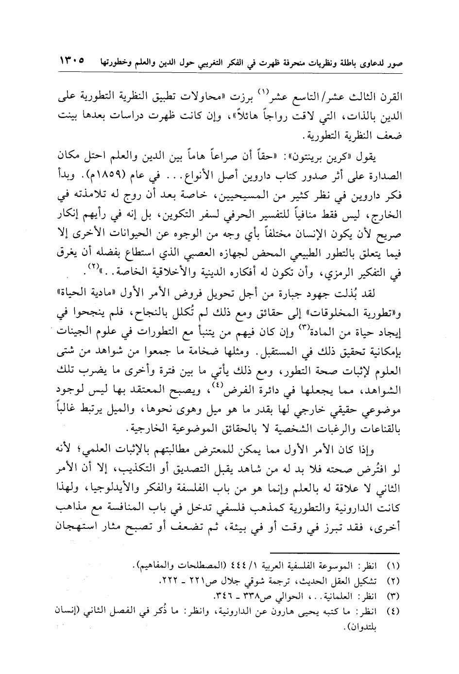 (¬4) انظر: ما كتبه يحيى هارون عن الدارونية، وانظر: ما ذُكر في الفصل الثاني (إنسان بلتدوان).
