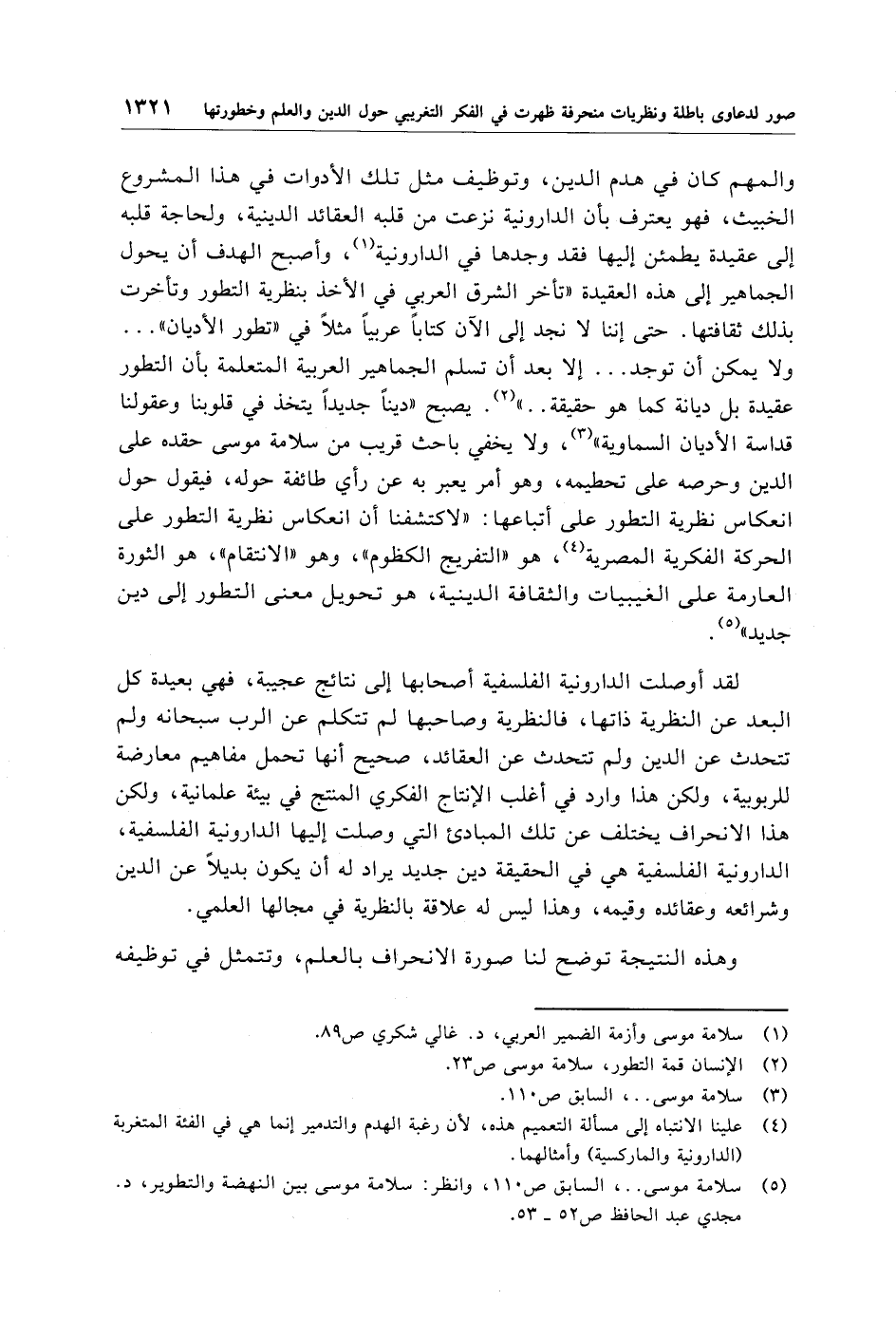 (¬4) علينا الانتباه إلى مسألة التعميم هذه، لأن رغبة الهدم والتدمير إنما هي في الفئة المتغربة (الدارونية والماركسية) وأمثالهما.