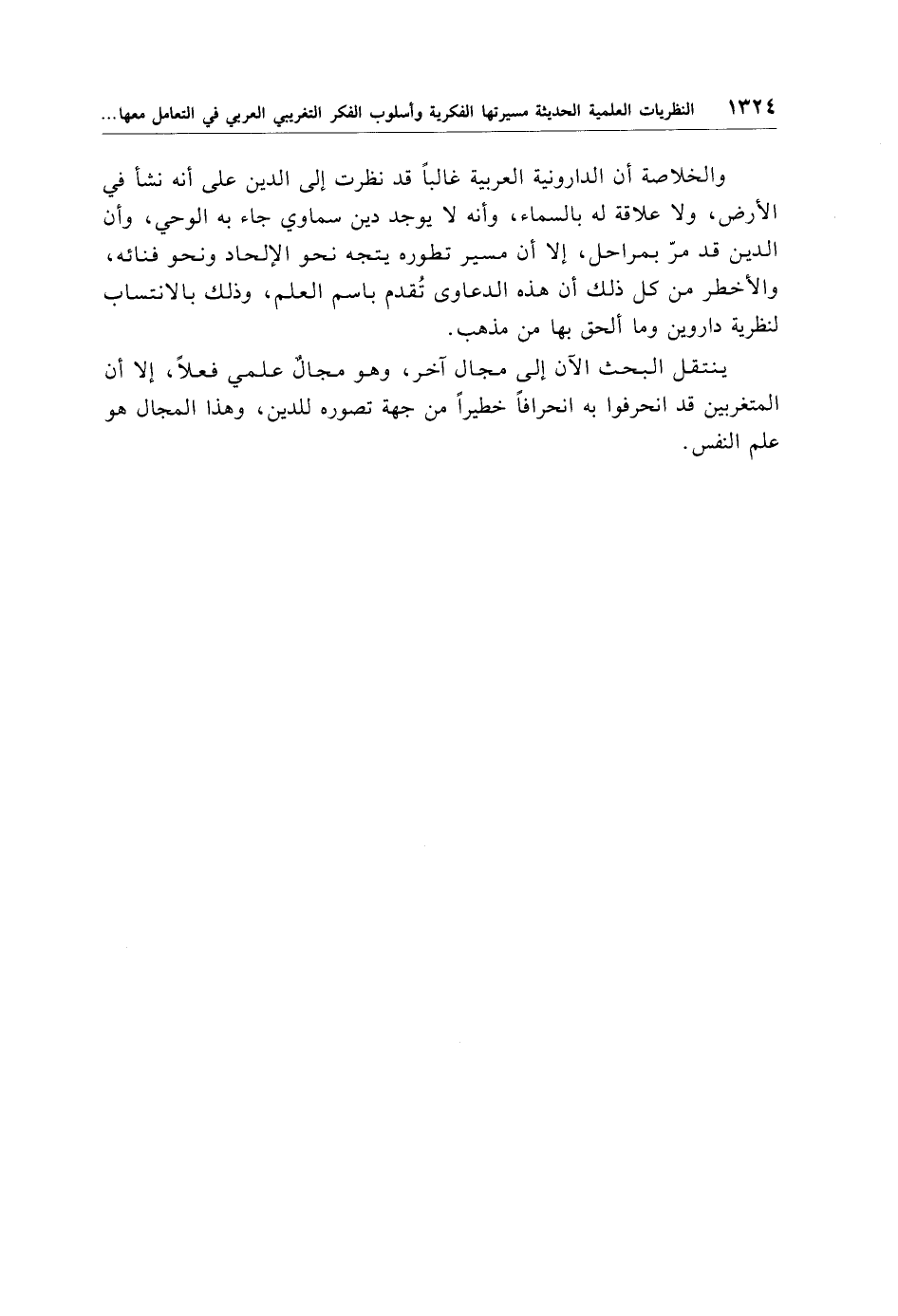 ينتقل البحث الآن إلى مجال آخر، وهو مجالٌ علمي فعلًا، إلا أن المتغربين قد انحرفوا به انحرافًا خطيرًا من جهة تصوره للدين، وهذا المجال هو علم النفس.