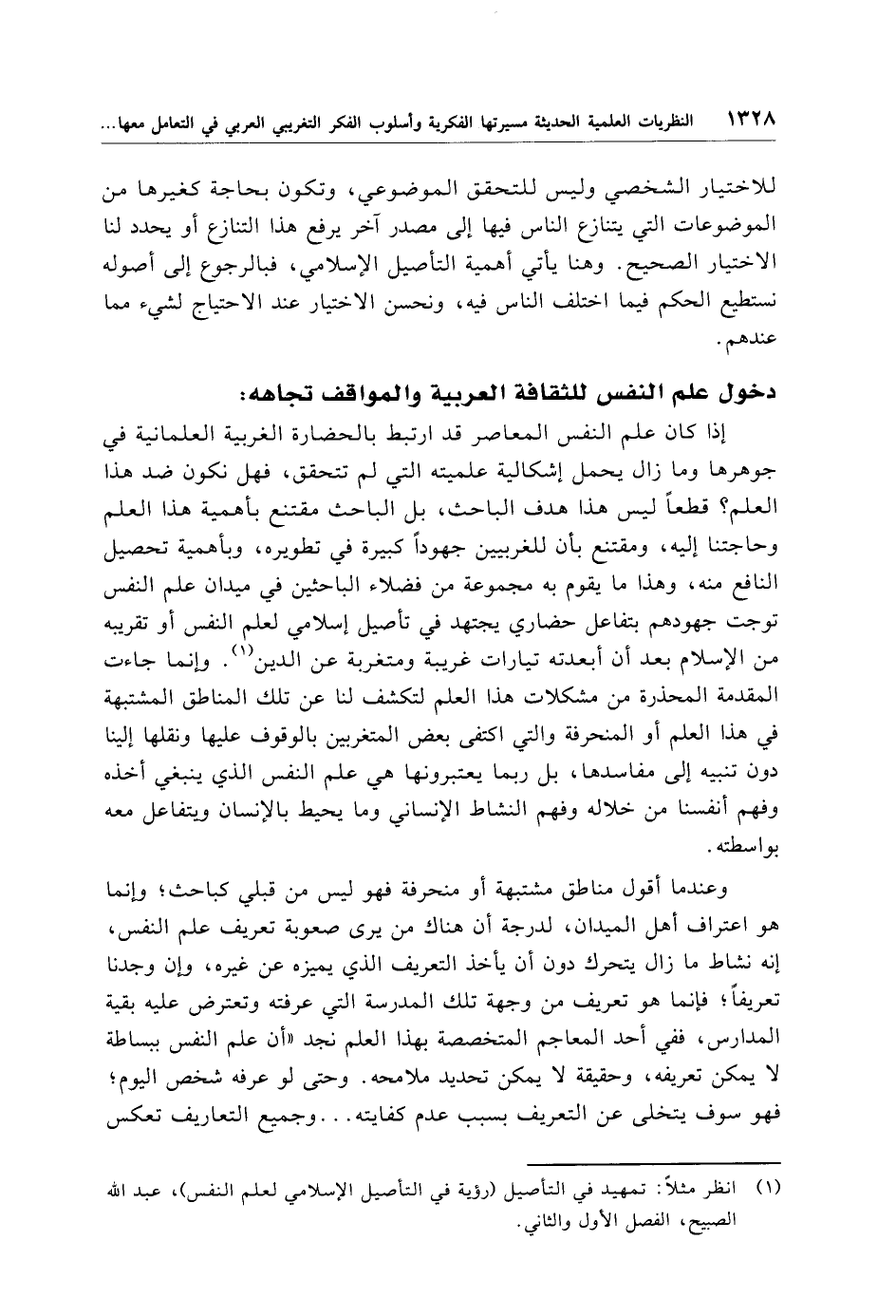 (¬1) انظر مثلًا: تمهيد في التأصيل (رؤية في التأصيل الإسلامي لعلم النفس)، عبد الله الصبيح، الفصل الأول والثاني.